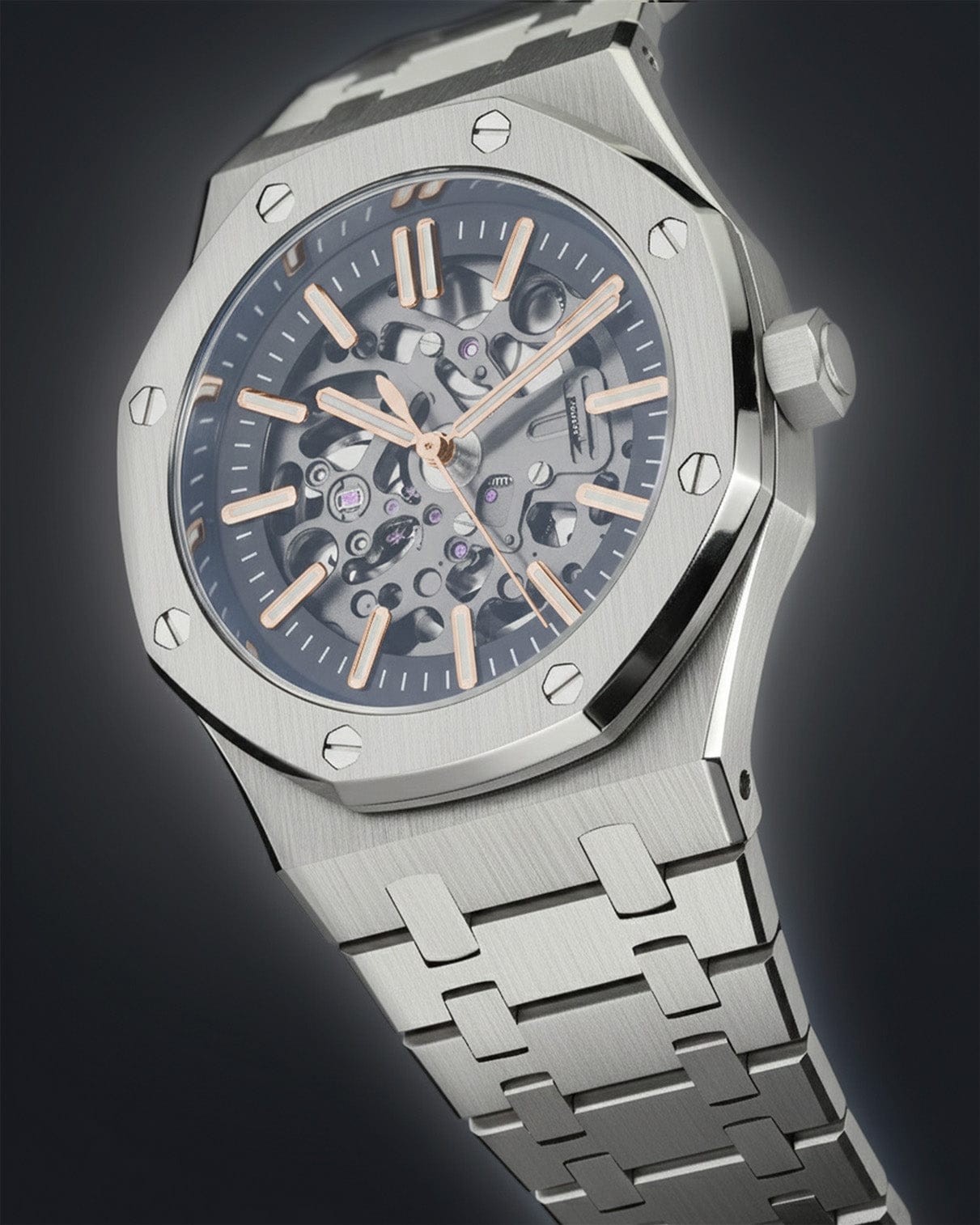 Seiko Mod - Royal Oak Skeleton 41mm Solv Tofarget Rosegull